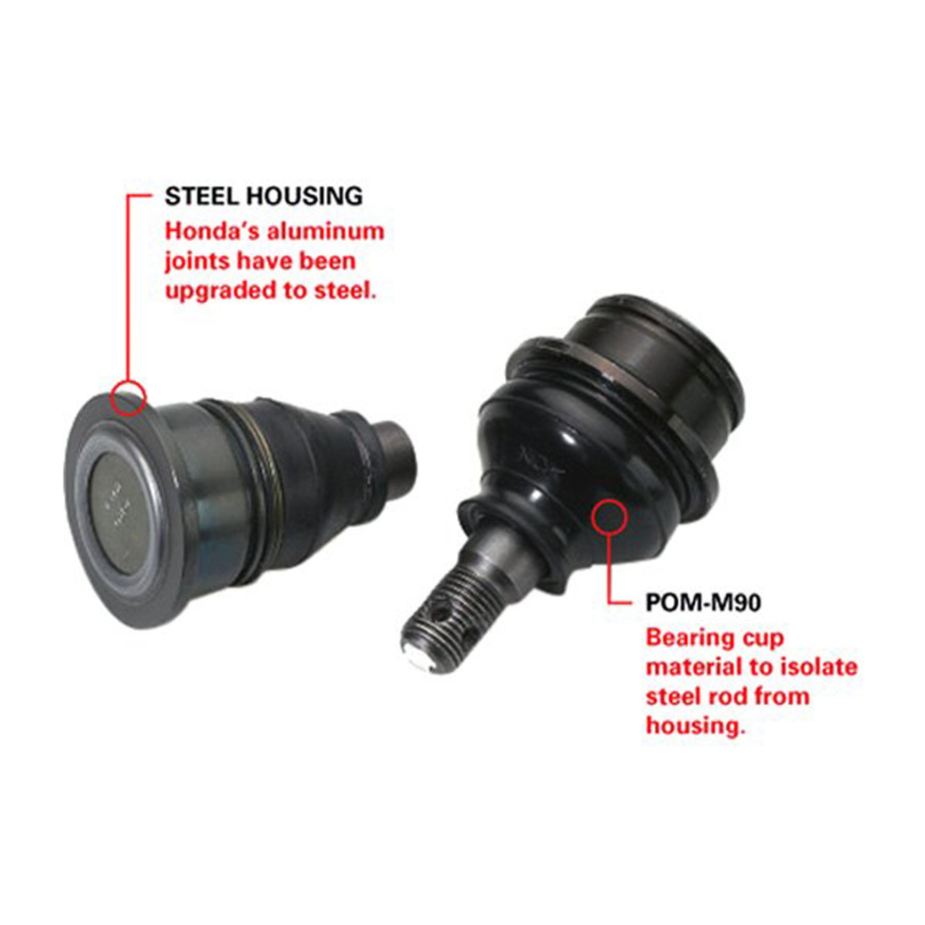 Ball Joint by All Balls®. Ball joint kit is sold per A-Arm and comes with snap ring and cotter pin. Ball Joints feature HD steel cases with POM-M90 bearing material for long life. AB offers replacement ball joints for those Kawasaki and Suzuki applications that force you to buy an expensive A-Arm or steering knuckle. Put an end to premature Honda ball joint failure by upgrading from the OE aluminum joint to HD steel joint.