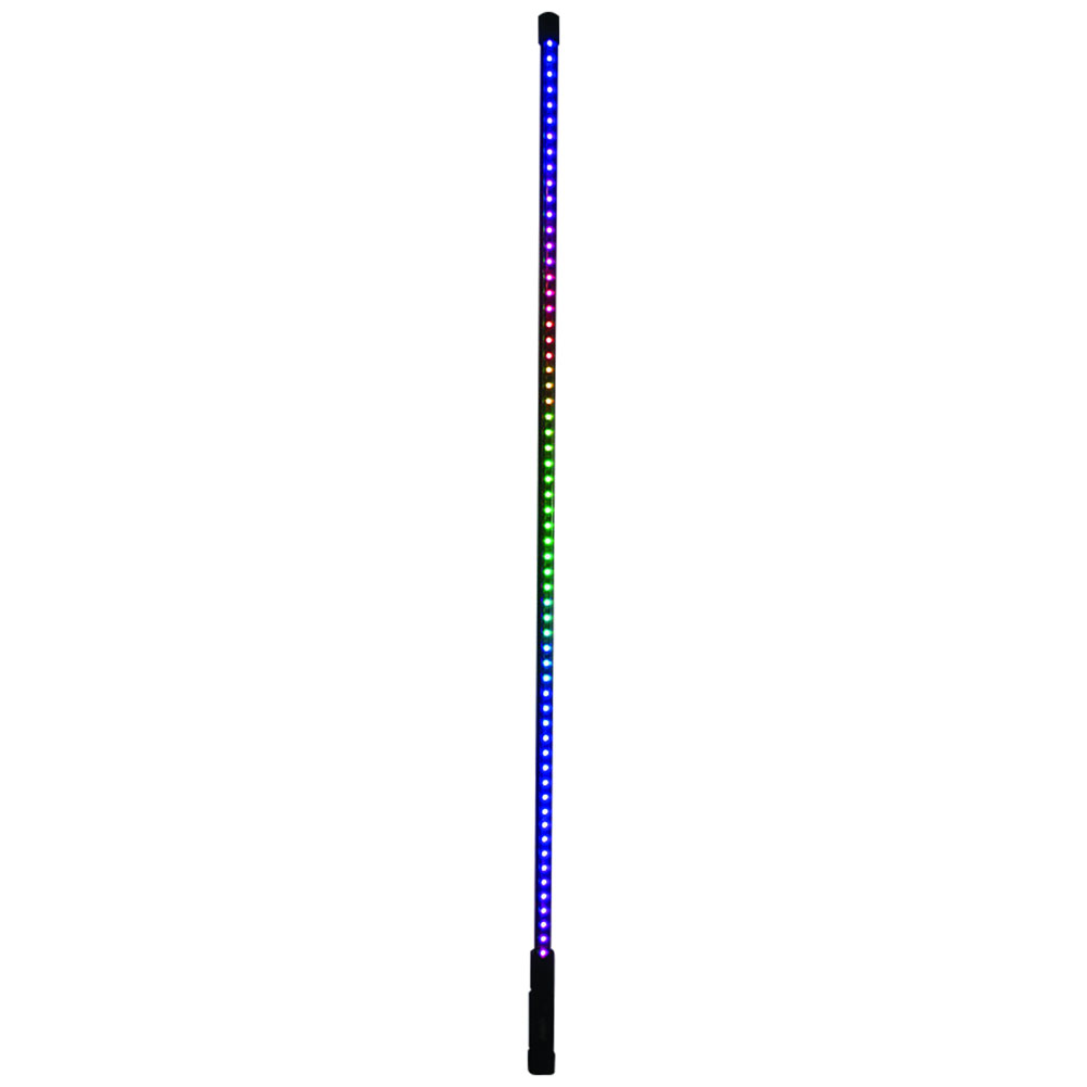 An improved, multi-colored LED lighted whip, the V2 is constructed from a polycarbonate tube that flexes and bends with additional improvements, including a thicker gauge wire, brighter LEDs and flag mounting options. Choose from the 300 pre-loaded, automatic patterns or create your own look and customize it with the included remote.