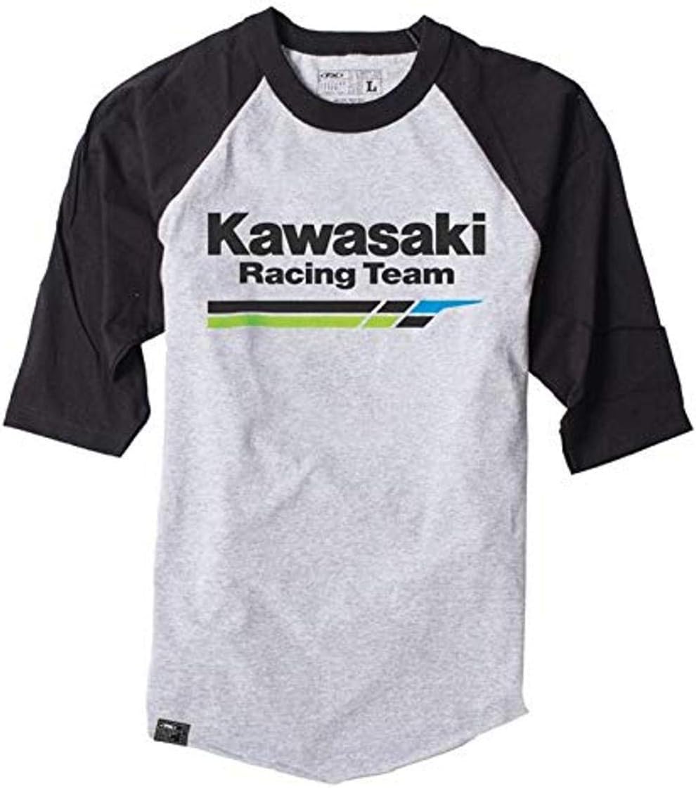 Factory Effex Kawasaki Raglan Baseball Shirt (Heather Gray/Black,Large)