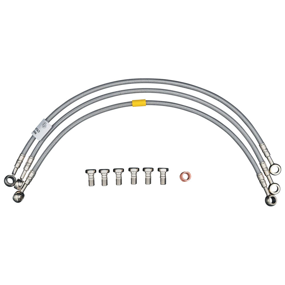 - PTFE Core with Stainless Braiding: Zero expansion for sharp front brake response.