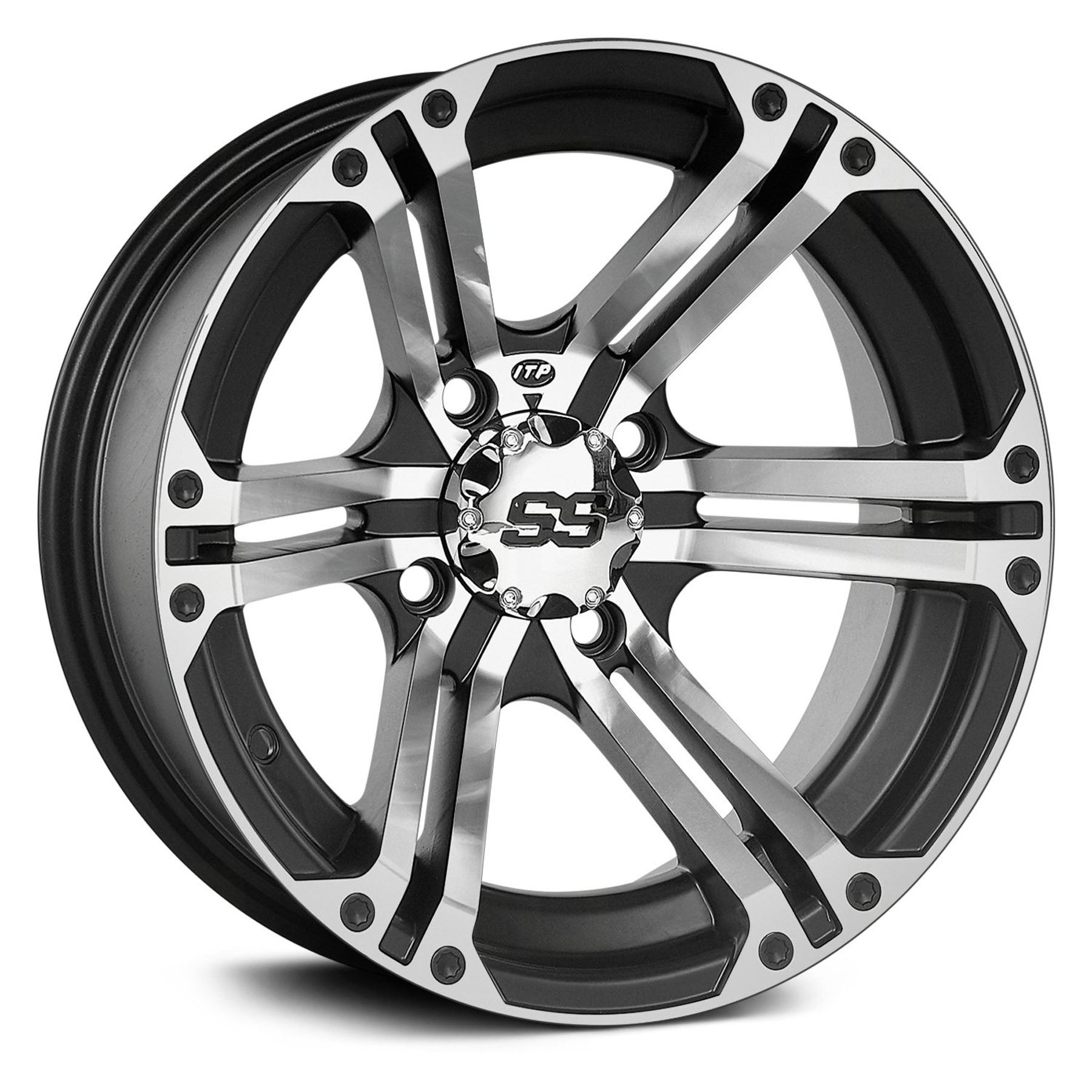 SS212 Rear ATV/UTV Machined/Black Accents Alloy Aluminum Wheel (1222230404B) by ITP®. Wheels Size: 12" x 7". Bolt Pattern: 4 x 137mm. Offset: 5+2. The next generation in SS Alloy style and performance. Strong, light and distinctively different. Built using ITP's exclusive Advancecast process to exacting QS 9000 quality specifications. Heavy-duty 12 in. ATV wheel rated at 700 lbs. Strong, lightweight and a striking appearance make this one-piece aluminum wheel a great choice for ATVs and UTVs.