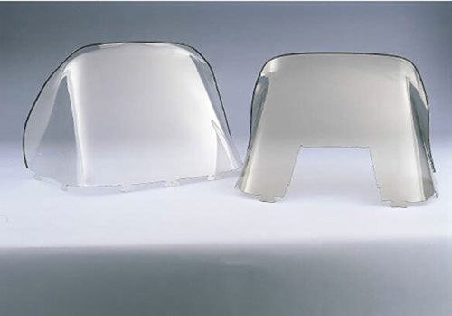 Precision cut to match OEM exactlyAll PART #s with an “L” designation are Lexan polycarbonate construction and are noted as such in “SIZE” column; all others are made from .075” thick Uvex butyrate which is heavier than most OEM models yet stays flexible at sub-zero temperatures (.100” thick windshields are also noted in chart)All windshields have permanently bonded trim for safetyGraphics windshields are silkscreened to a solid black color at the base to cover mounting area, then fade out as they move up the windshield for styleAvailable in standard, high and low heights (see chart)Tight quality control for a quality fit; manufacturer guarantees windshields against defects in material and workmanship