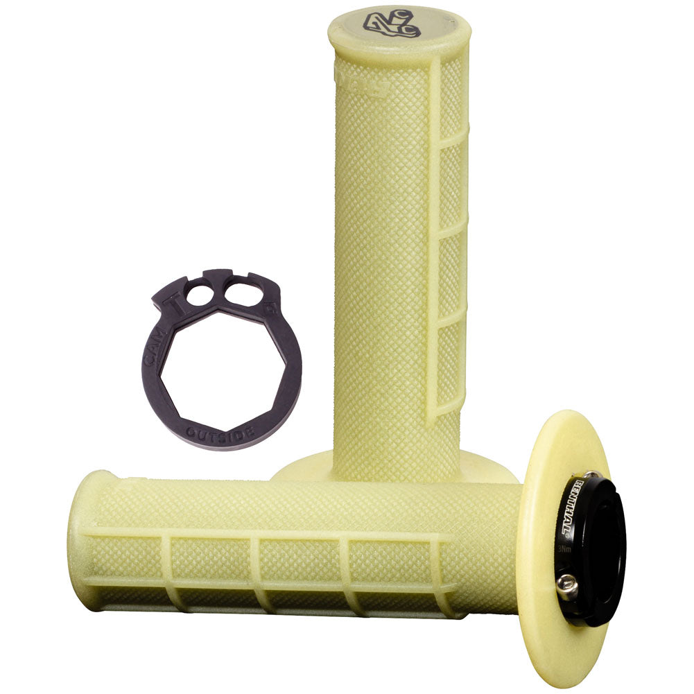 - Innovative, patent pending twin split collar clamp design allows for easy installation without sanding on both knurled and non-knurled Handlebars, while ensuring slip-free fitment. The included throttle cam set utilizes industry standard, octagonal snap-fit design (as used by Kawasaki and KTM) to enhance compatibility over the widest range of motorcycles, making for "The most versatile Lock-On grip product on the market".