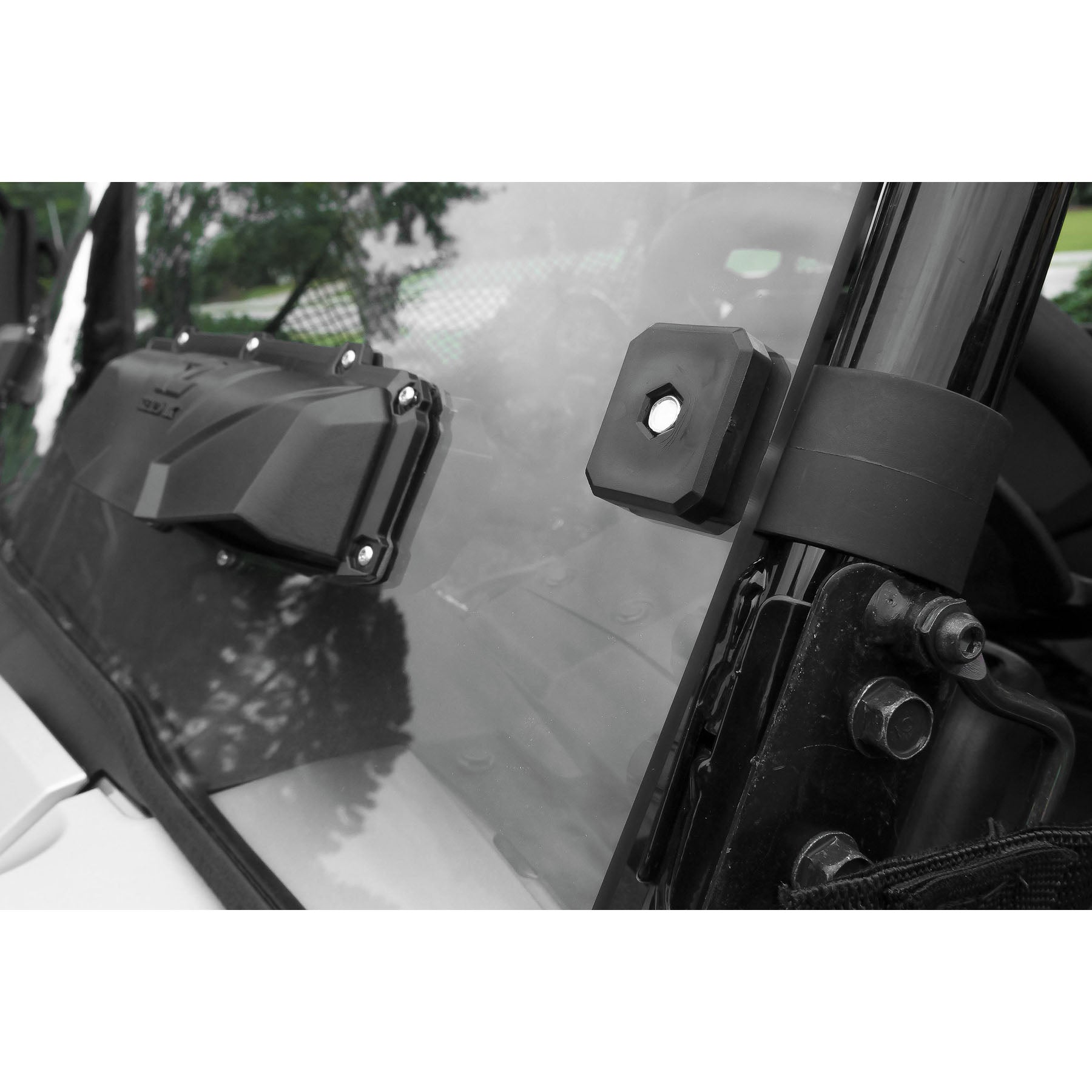 Versa-Vent™ Scratch-Resistant Polycarbonate Windshield by Seizmik®. Material: Double-Sided. Seizmik's VersaVent windshield comes equipped with two cleverly designed vents that let the driver and the passenger independently control the amount and direction of airflow. The VersaVent windshield also features a defog mode. No other windshield offers all these features. The vent is made of glass filled nylon, so it's incredibly durable. The scoop on the front gathers up air off the hood and re-directs it to inside the vehicle so even at very slow speeds there is a surprising amount of air that can come through the vent. The design of the scoop and the gasket between it and the windshield keeps precipitation out while still allowing airflow in-as much or as little as either the driver or passenger desires. When placed in 'defog' mode, the vent directs outside air onto the inside surface of the windshield to prevent fogging. Innovative windshield vents: Made of super-durable glass-filled nylon, Designed with built-in defogging vents, Gasket sealed against water intrusion, Fully adjustable easy-to-use louver for variable airflow, Two vents per windshield.